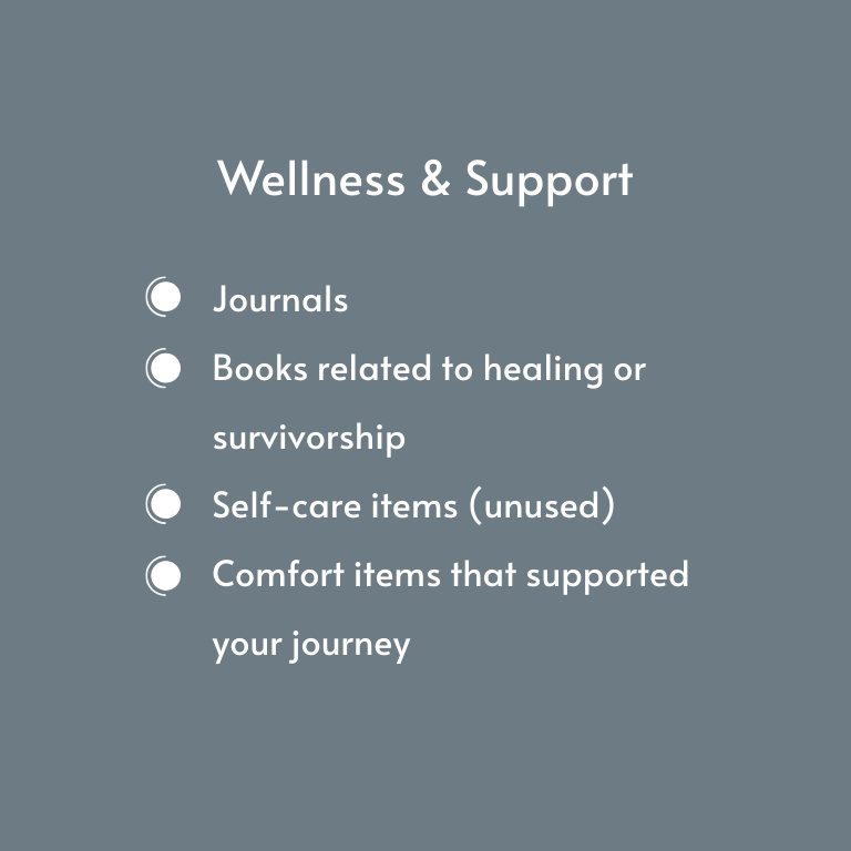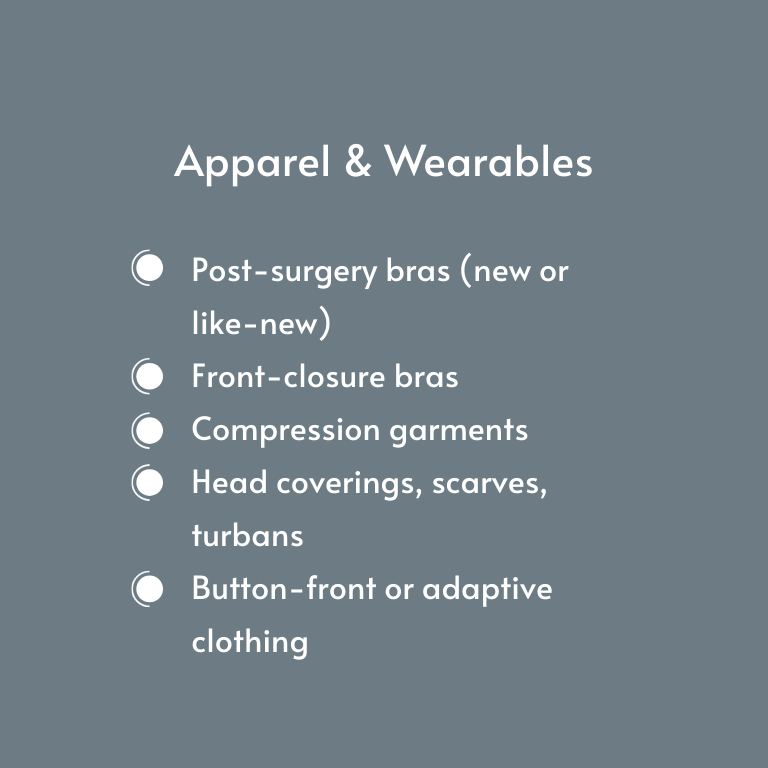 Many people accumulate meaningful care and recovery items during their cancer or reconstruction journey — items that still have life, comfort, and purpose left in them. At the same time, others are starting their journey without access to those same supports.