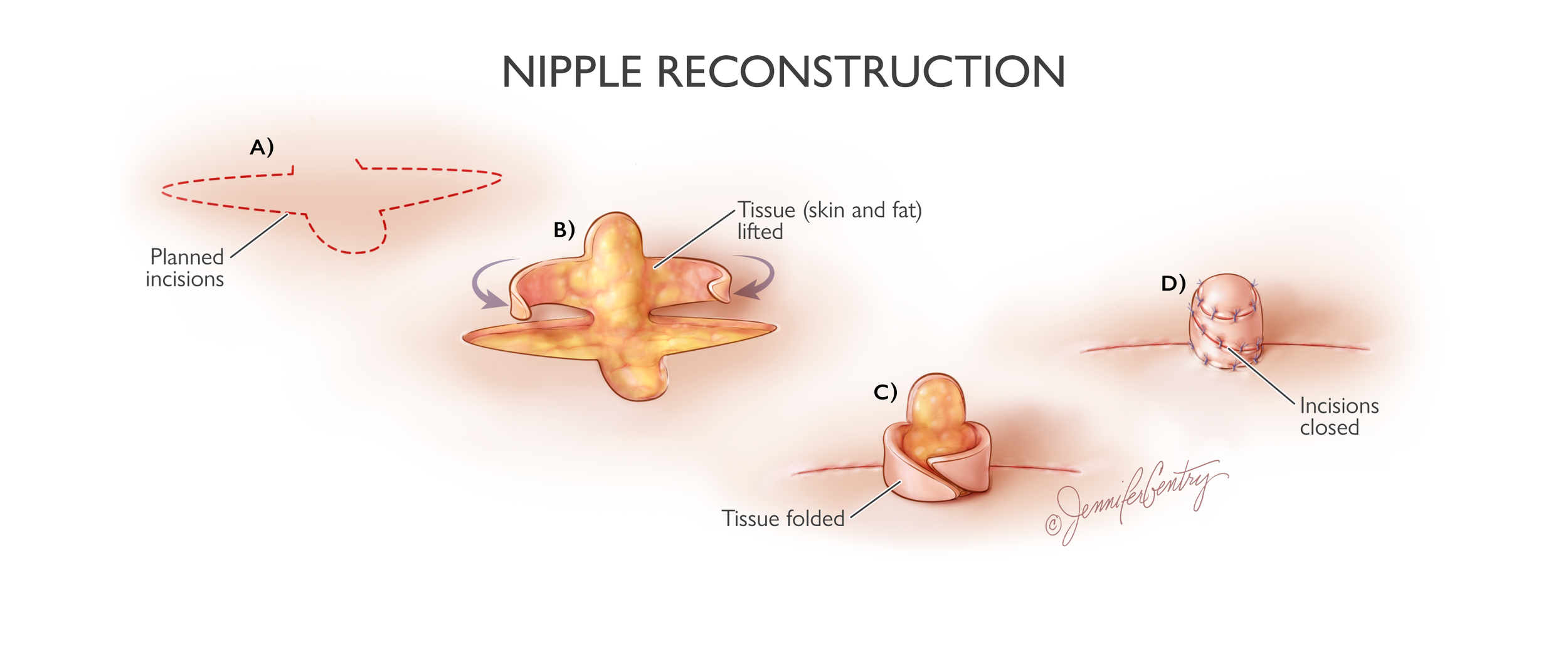 Skin grafts (sometimes): If needed, a small piece of skin from another area (like the inner thigh) may be used to help build the nipple.